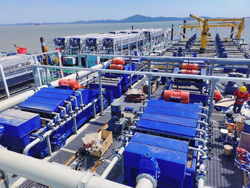 В проекте используется комбинированный процесс «обезвоживание с помощью фрезерного всасывающего земснаряда + вибрационного грохота + пластинчато-рамного фильтр-пресса». Система в основном состоит из модуля вибрационного грохота, модуля устройства сброса шлака, модуля распылительного устройства и модуля аварийного перелива шлама. Основным оборудованием является вибрационный грохот KOSUN LS1850, производительностью до 1800 м³/ч, способный удалять мелкие частицы ила размером более 2 мм. Оставшийся шлам поступает в пластинчато-рамный фильтр-пресс для образования иловых корок, предназначенных для утилизации за пределами предприятия.