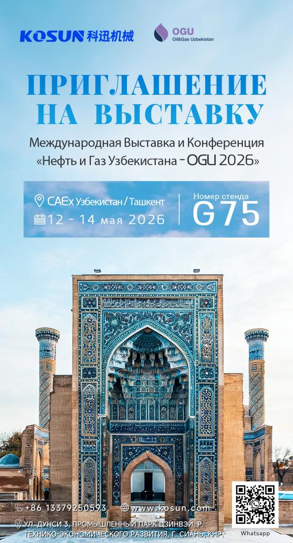 Компания KOSUN примет участие в 28-й Международной выставке и конференции «Нефть и Газ Узбекистана – OGU 2026» в мае 2026 года. Добро пожаловать на наш стенд G75, чтобы ознакомиться с нашей продукцией.