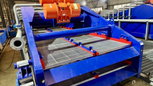 Данная система обработки и просеивания осадка состоит в основном из семи основных функциональных модулей: модуля подачи, модуля распределения материала, модуля просеивания, модуля распыления, модуля сброса шлака, аварийного модуля и электрического модуля. Эти модули образуют высокоинтегрированное и эффективное решение для разделения твердых и жидких фаз, обеспечивающее превосходную производительность и надежность в различных условиях эксплуатации. Основным оборудованием системы является крупногабаритный вибрационный грохот LS1850, разработанный компанией Сиань KOSUN. Он имеет двухслойную конструкцию, позволяющую эффективно разделять материалы. Общая площадь сита достигает 18 м² (9 м² на слой), что обеспечивает достаточное время пребывания материалов на сите и, следовательно, высокоэффективный эффект просеивания.